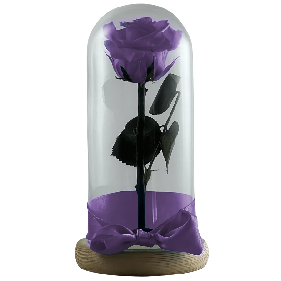 Ez a lila örökrózsa üvegbúrában tökéletes választás minden különleges alkalomra: