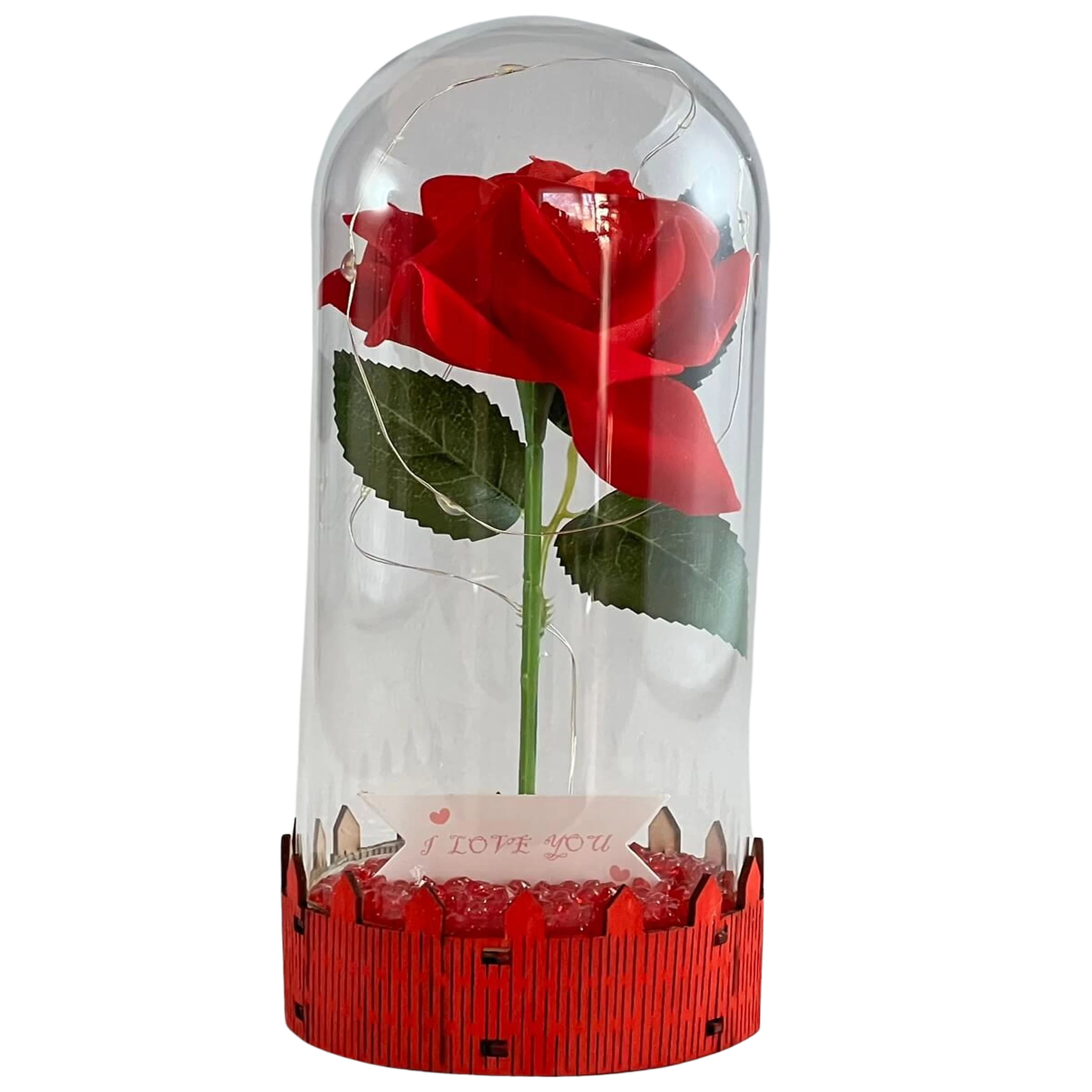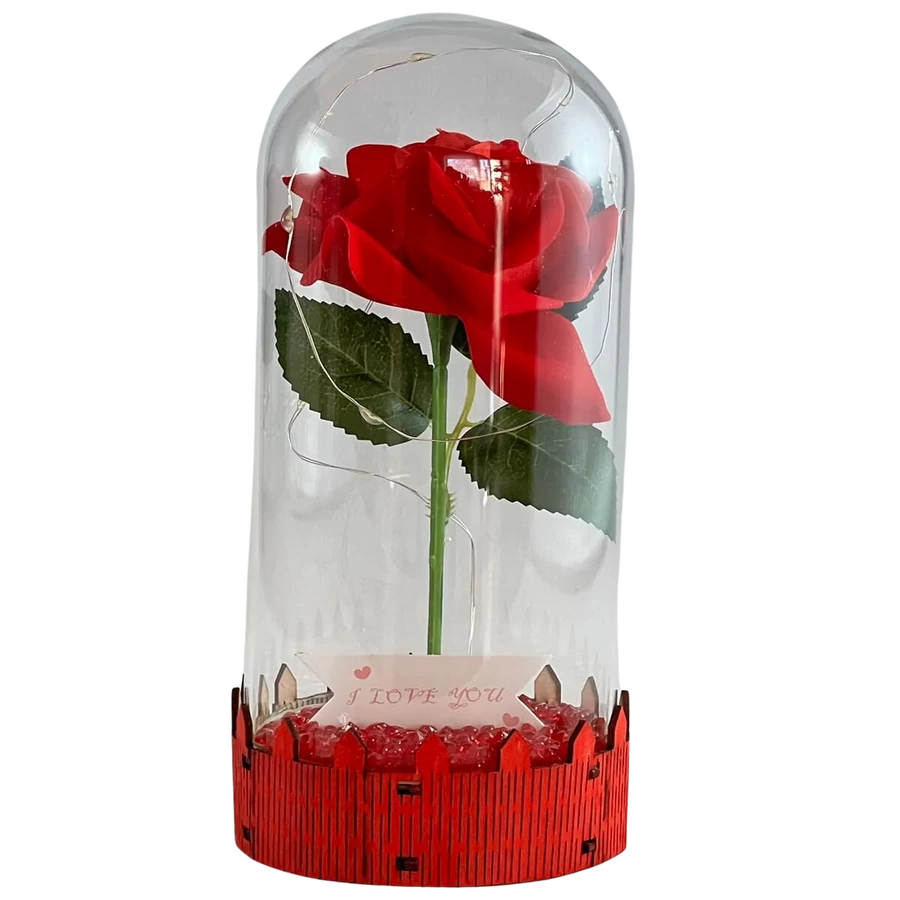 A termék központi eleme egy élethű, prémium kidolgozású rózsa,( nem valódi rózsa) amelyet egy átlátszó üvegbúra óv meg a portól és a külső hatásoktól. Az üveg alatt végigfutó vékony, LED-sor különleges textúrát és mélységet ad a virágnak, miközben lágy éjszakai fényként vagy hangulatvilágításként is funkcionál.
