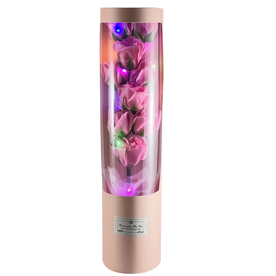 Szappanrózsák dobozban ledes 10x43 cm-rózsaszín